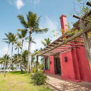Para compor a arquitetura autêntica das 38 acomodações, foi usada matéria-prima nativa como a piaçava e a tela de dendê. Cada qual com seu charme, prontos para receber você.